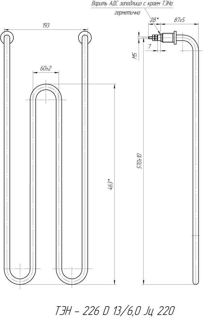 Купить Гальванический ТЭН 226 D 13/6,0 Jц 220 в компании "Марион". Применяется в промышленном оборудовании, изготовлен из материала Нержавеющая сталь, диаметр трубки 13 мм. В качестве варианта подключения - резьбовая шпилька. Напряжение трубчатого электронагревателя 220 В, мощность 6 кВт. Данный товар доступен в нашем каталоге как для онлайн заказа, так и изготовления под заказ. Для того, чтобы приобрести Трубчатый ТЭН для среды "Агрессивные жидкости" оформите заказ на сайте или свяжитесь с нашими сотрудниками.
